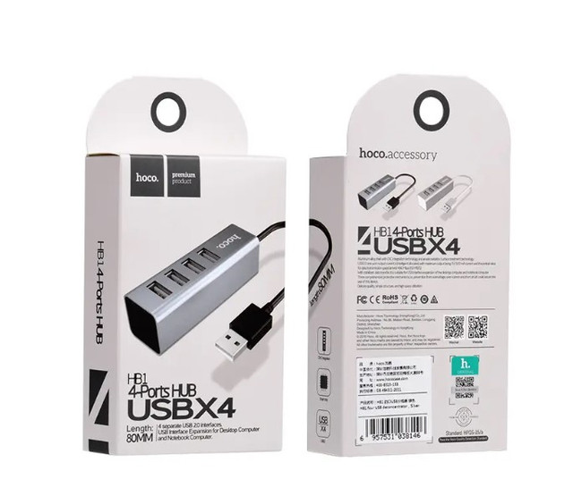 USB hub хаб на 4 USB порти HOCO HB1 сірий